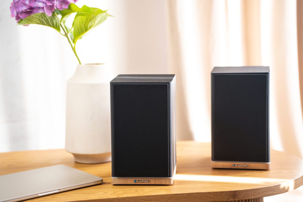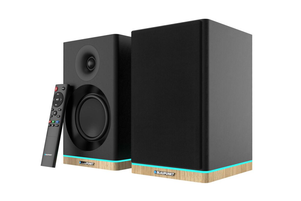 Thanks to the optical input, it is possible to directly connect a digital source – this can be audio from a game console, a signal from a desktop computer sound card or a signal from a digital set-top box for terrestrial TV. On the rear panel of the main speaker is also located RCA input for analog audio signal . You can use it to connect with virtually any analog source. This can be a turntable such as BLAUPUNKT VT100 with built-in preamplifier, it can also be audio from a DJ console, or audio signal from an older type of TV.