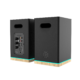 Create the right atmosphere while listening with LED lighting. The speakers are equipped with a discreet yet elegant accent in the form of an LED strip. This lighting is located at the bottom of the cabinet and it is possible to choose from seven different lighting modes. Use an appropriately selected effect or color to create the optimal mood depending on whether you are playing a dynamic game on your computer, listening to relaxing music or watching a movie. It’s also possible to turn off the lighting completely – you decide by using the right button on the remote control.
