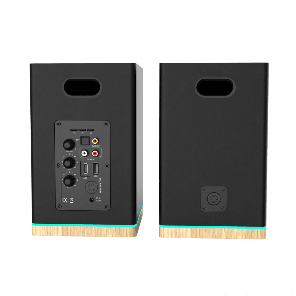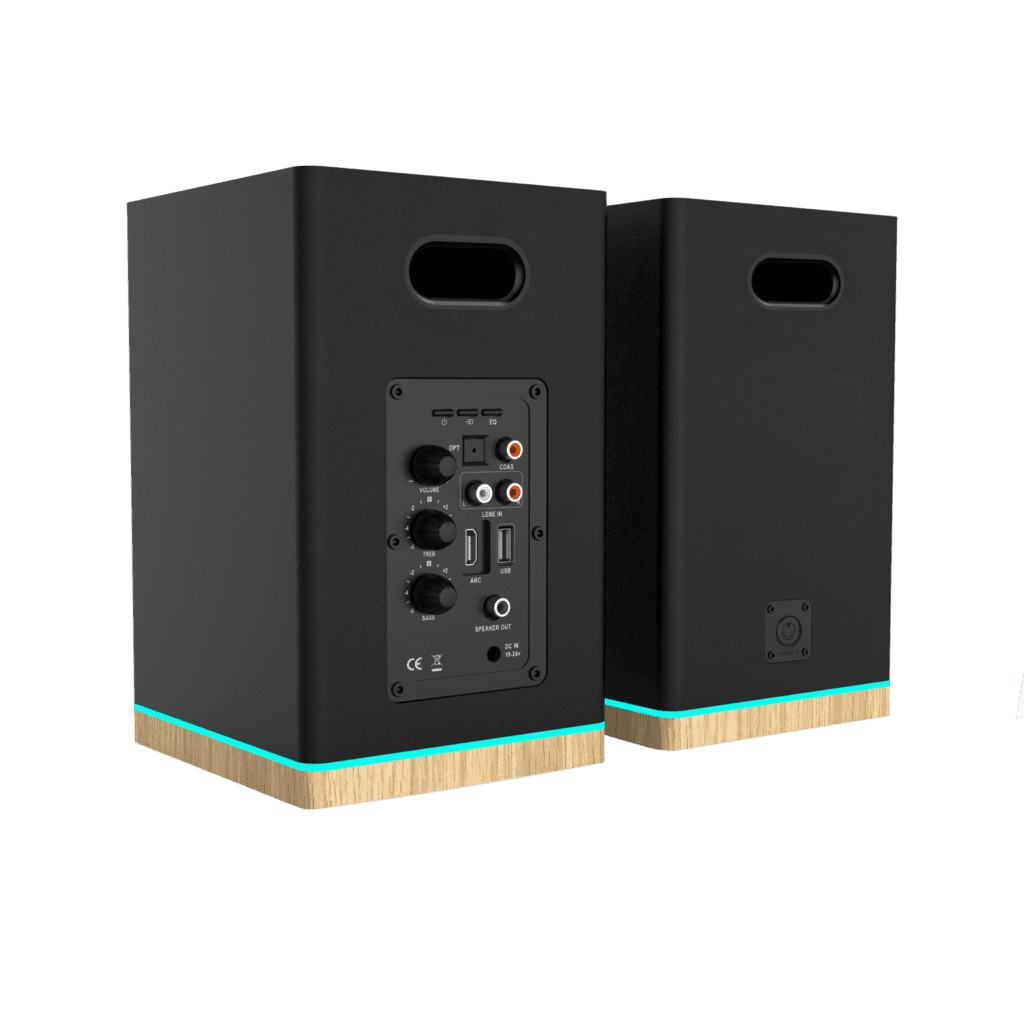 This model is equipped with TV AUDIO CONNECT, an HDMI port with ARC return channel. This is ideal for connecting these speakers to a TV that is also HDMI ARC compatible. HDMI ARC is now an increasingly standard option for sending audio signals from a TV to peripherals, including active speakers. In addition to transmitting the audio signal, HDMI ARC also makes it possible to control some of the functions responsible for regulating sound with a single remote control. Thus, with the remote control from the TV you can control the volume of the speakers or mute them. This is a very convenient solution, because it eliminates the need to use several remote controls, to control the entire system. HDMI ARC also allows the speakers to automatically turn on and off when the TV is turned on or off – another practical advantage. This feature on some types of TVs requires activation in the TV menu – so it’s worth remembering.