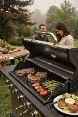 The GG601 offers unparalleled versatility in food preparation. Six independent burners allow simultaneous grilling of different products at different temperatures – from gentle heating of vegetables (about 150°C), to medium-fried steaks (about 200-230°C), to intense grilling at high temperatures (over 300°C).
