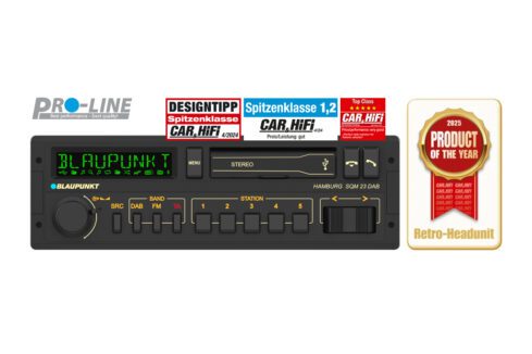 Over the years, some models have developed into true cult objects. This also applies to the legendary Blaupunkt “Hamburg SQM 23” from 1983. Now we present the new interpretation of the popular 1-DIN car radio and combine the design of the 80s model with new technologies and functions. The result is the Blaupunkt “Hamburg SQM 23 DAB”.