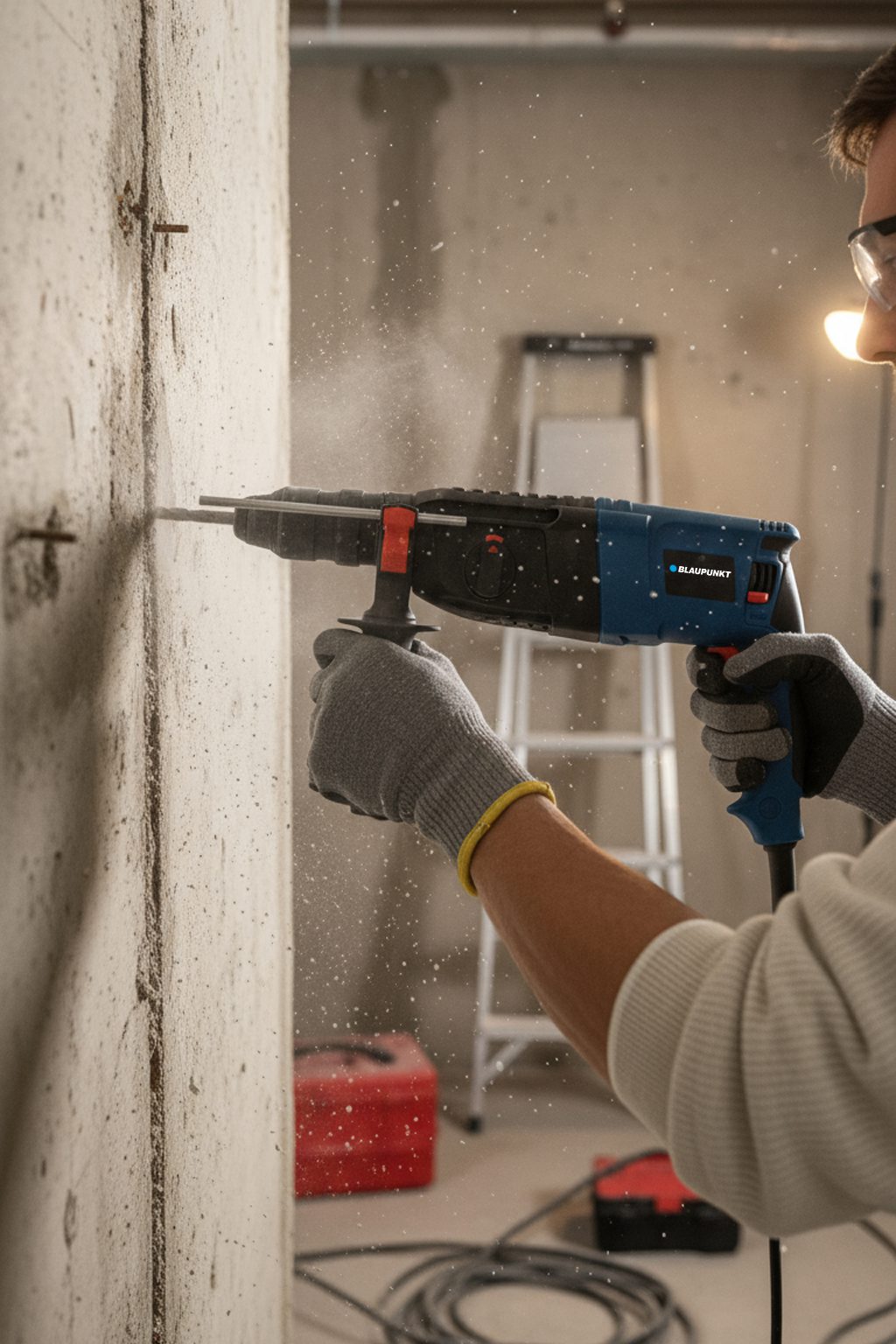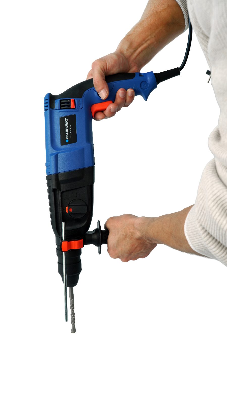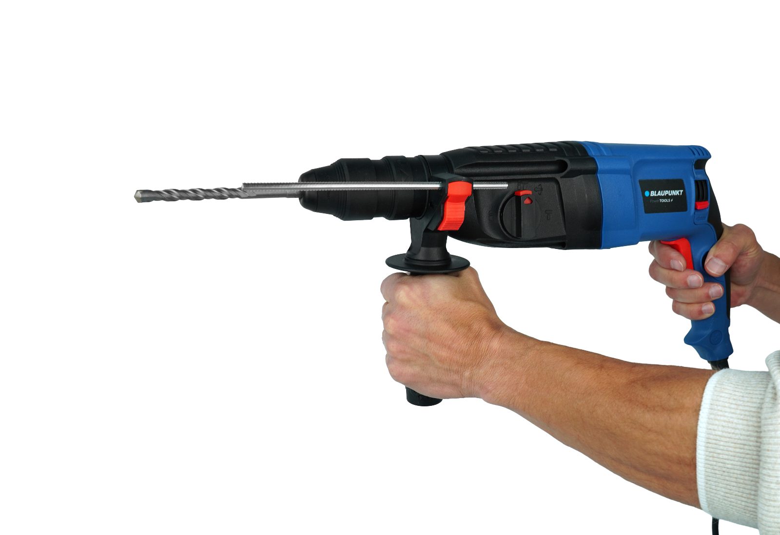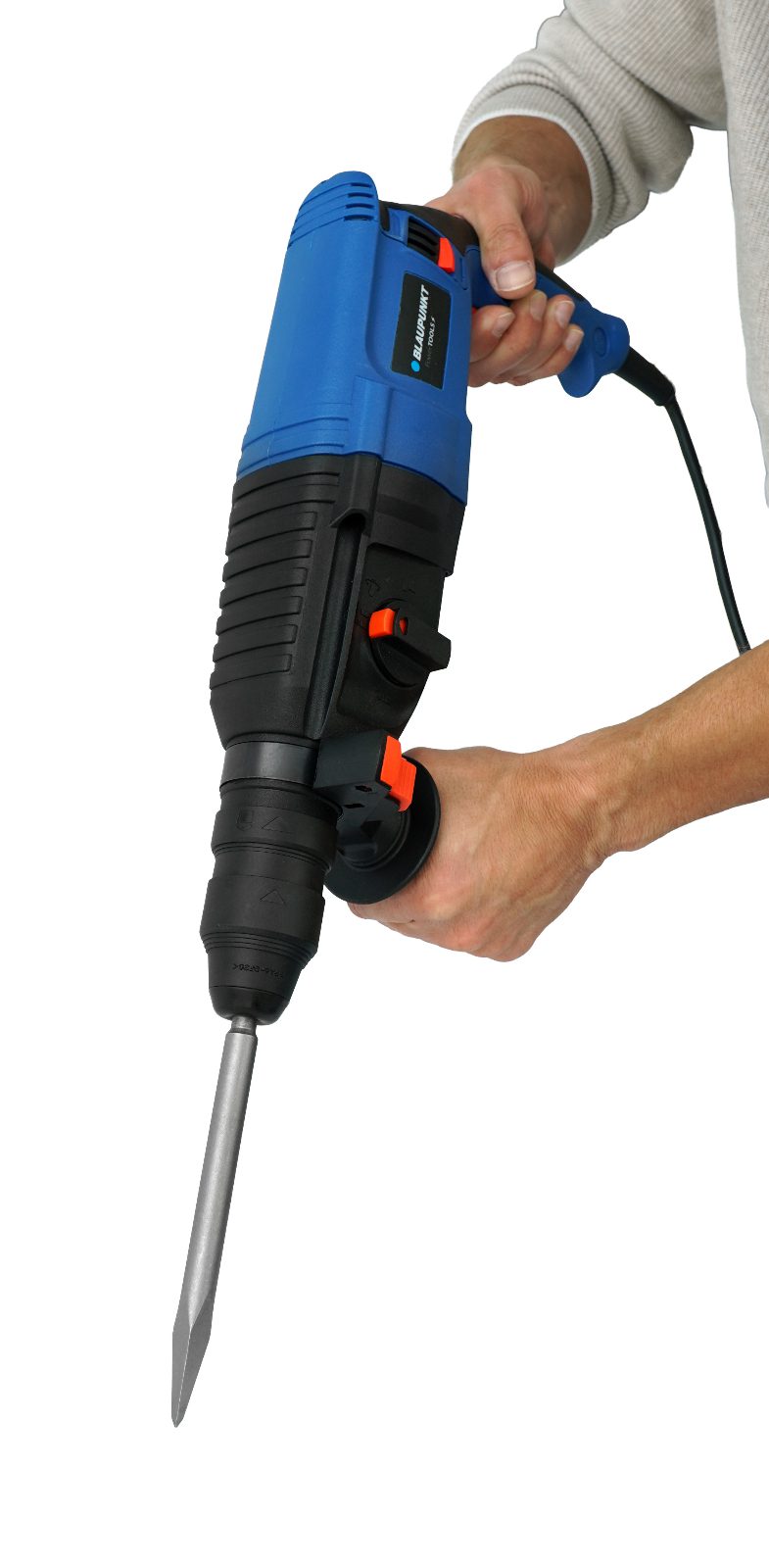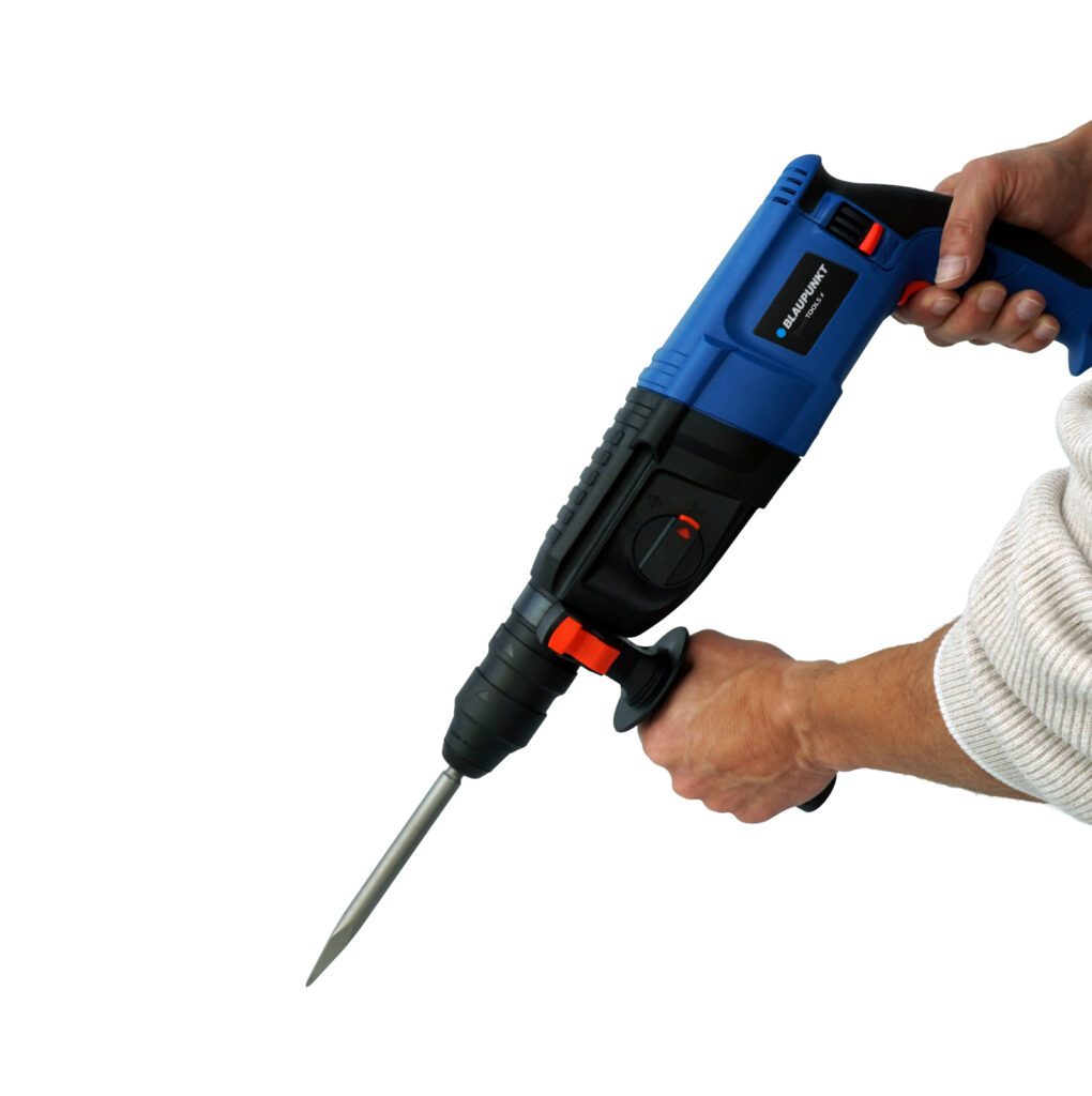 The RH3010 impact hammer by BLAUPUNKT is indispensable for smaller construction work. Its maximum power of 1,200 W makes it ideal for drilling and forging work in concrete.