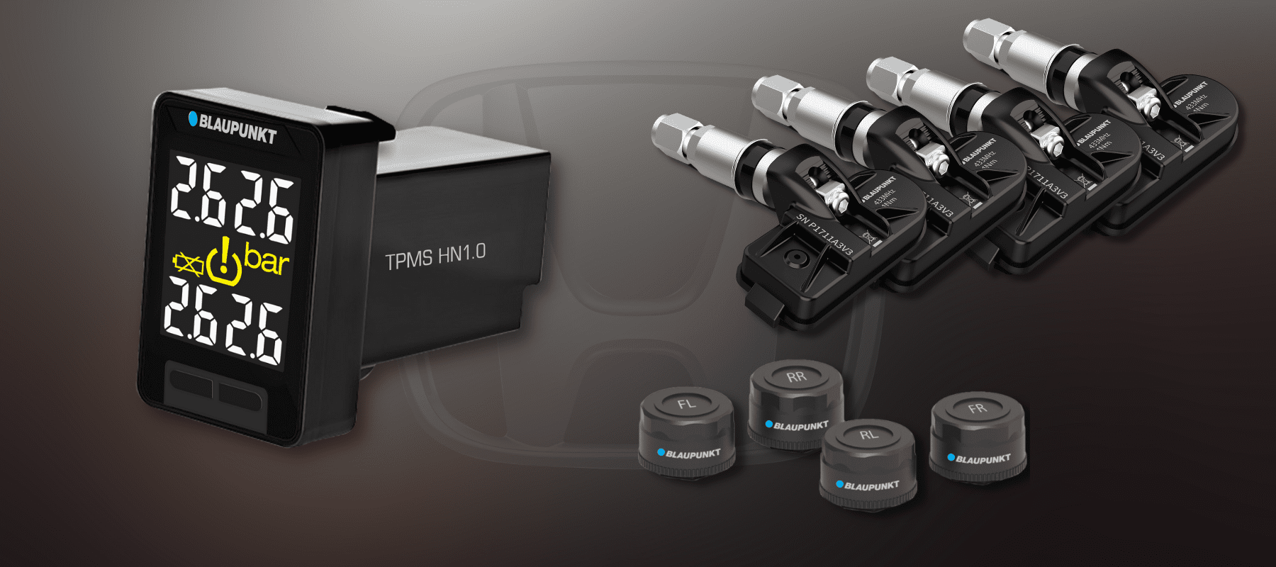 Blaupunkt Tire Pressure Monitoring System TPMS HN1.0 E/V is a wireless real-time time pressure monitor. The device aids in helping the car driver to monitor the tire pressure level in the car at all times. It comes with a set of 4 valve sensors, 4 external sensors, and also a display for tire pressure.