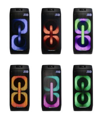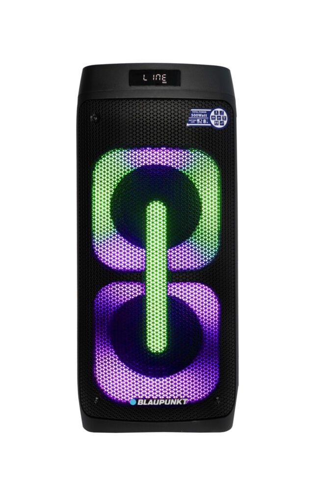 Głośnik typu Party Box wyposażony w funkcję Bluetooth do bezprzewodowego odtwarzania plików muzycznych, funkcję bezprzewodowego stereo TWS, odtwarzacz USB/microSD, radio FM z cyfrową syntezą PLL oraz wejście AUX. Urządzenie posiada wbudowany akumulator, kolorowe oświetlenie LED oraz funkcję karaoke z jednym mikrofonem bezprzewodowym w zestawie. Do dyspozycji pozostają również dwa dodatkowe gniazda dla mikrofonów przewodowych.