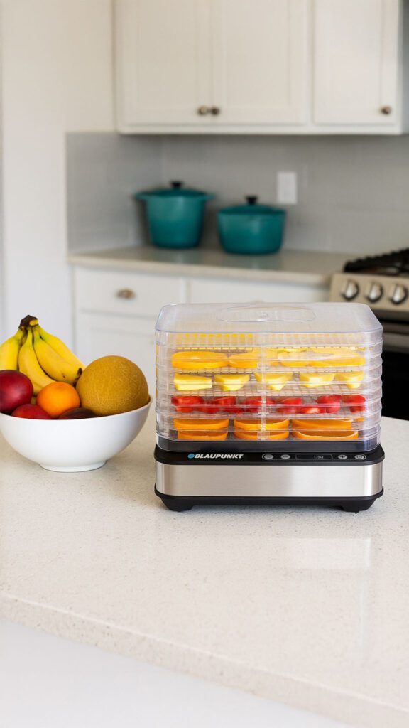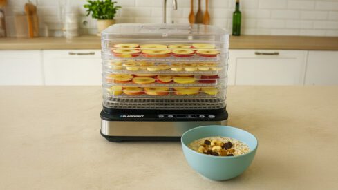 Das Dörrgerät FDD601 von Blaupunkt besteht aus fünf transparenten Sieben mit einer Gesamttrocknungsfläche von 3250 cm2. Die Siebe sind 3 cm hoch und 32×25 cm groß, daher können Sie eine große Menge an Zutaten aus dem Wald oder Lieblingsfrüchten auf einmal dörren. Die Dörrgeschwindigkeit wird ebenfalls durch die Leistung von 420 W sichergestellt. Auf diese Weise können Sie die hohe Temperatur erreichen, die zum Dörren größerer oder feuchter Obststücke, wie z. B. Apfelspalten, erforderlich ist. Der erzwungene Luftstrom verbessert die Zirkulation und ermöglicht ein gleichmäßigeres Dörren der Produkte.