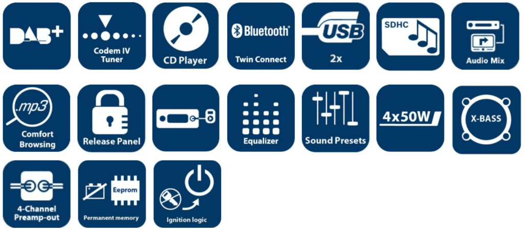 Sinusleistung bei 14.4 V: 4 x 24 Watt
