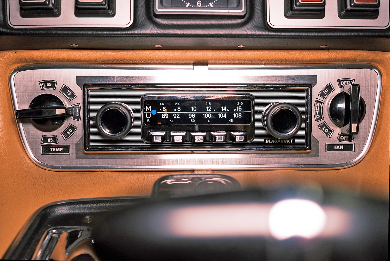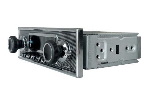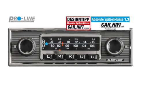 With the classic dimensions of 1970s dashboard devices, rotary and push buttons, and the striking pinstripe front with chrome frame, the FRANKFURT Stereo MB exudes authentic retro charm in the classic car cockpit. Beneath its timeless exterior lies state-of-the-art technology: equipped with the Blaupunkt Codem IV high-end tuner, it offers FM, AM and DAB+ for excellent reception and sound.